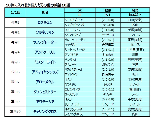 続いて、悩んだ末に10傑から外した10頭もご紹介します。