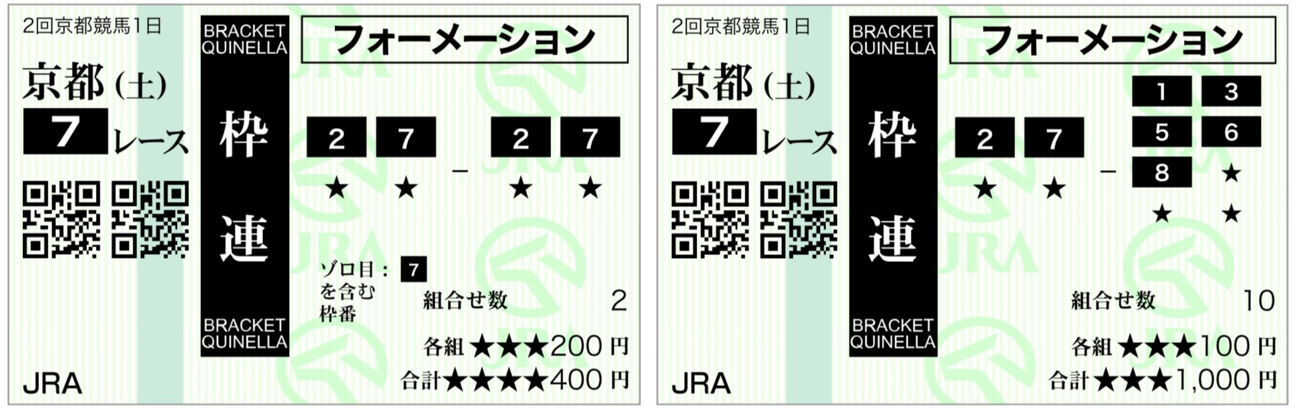 昨年のダート未勝利勝ちから追いかけてるホウライアキコの子 ⑤ジェイエルマスター、2勝クラスは暮れの中山1800でしたが改めて力を確認できる完勝でした。それでもワンターンの東京マイルの方が合うだろうし、後方一気のタイプで取りこぼしの可能性はありつつ、能力的にはクラスは通過点でしょう。2着には届いて欲しいとの想いから枠連です、典さん、あんまり酷い後ろポツンはやめてください。馬券買ったら下に載せます。