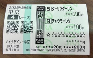 ⑤ミスブランニュデイ:母ハナズゴール、再度 芝を試してみるって。もう1回くらい買っても良いです。単勝、複勝 各100円。頑張れ👊