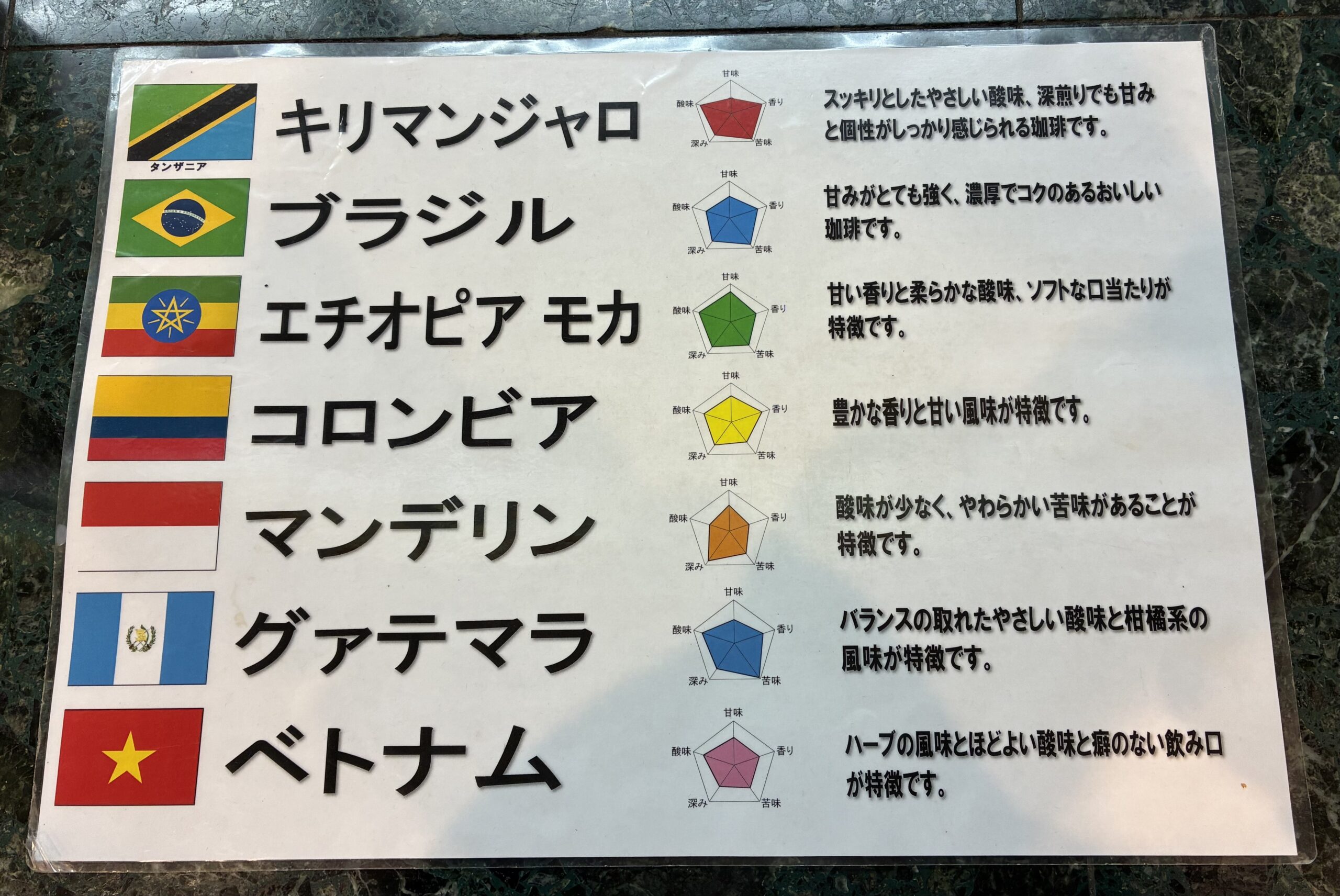 そして、中山と言えば、フードコートの“福三”です。鳥千のチキンも美味しいけど、福三の唐揚げは、今は亡きおばあちゃんの手作り唐揚げと同じ作り方。母子家庭でおばあちゃんの夕飯で育ったので、ほんと涙が出る逸品なんです。コーヒーも必ず福三ですね、その日の気分で下の通りの種類が選べる、頼んだその場で挽いてくれるので、他のコーヒー飲めなくなりますよ。昨日はベトナムにしました🇻🇳 他店に悪いけど、全然違いますよ☕️