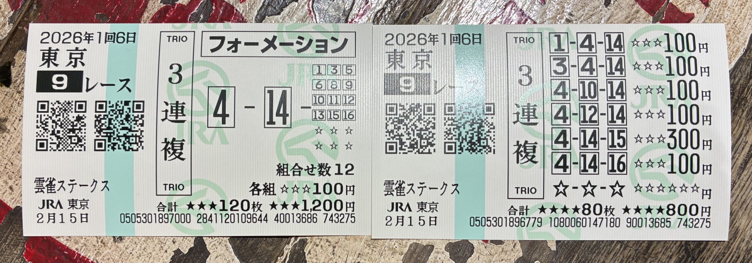 ここまでは残っていたい第4関門、中波乱希望、ここが軽くドボンのレースと見ています。まず、引退レース ⑤バビット、華々しく有終の美を飾るため、前ポツン大逃げになるのかと。となると離れた2,3番手が展開的に有利で、頭は好位置の取れる ④エコロディノス かなと思ってます。渋太いタイプですし坂の下りで加速して、バビット交わしてゴールの展開でお願いしたい。人気通り能力は ⑥エリキング ですが、サウジで勝ったばかりの藤田晋オーナーという点と、10Rグランドプラージュで川田が勝つ前提で組み立てるので、何となくの予感で差し届かずじゃないかなぁ… あとは久々 ①ヘデントール ですね。名ステイヤーには間違いないですが、逆に2200は短いとみて紐まで。WIN4はエコロディノス1通り、勝負馬券はインスタまで。