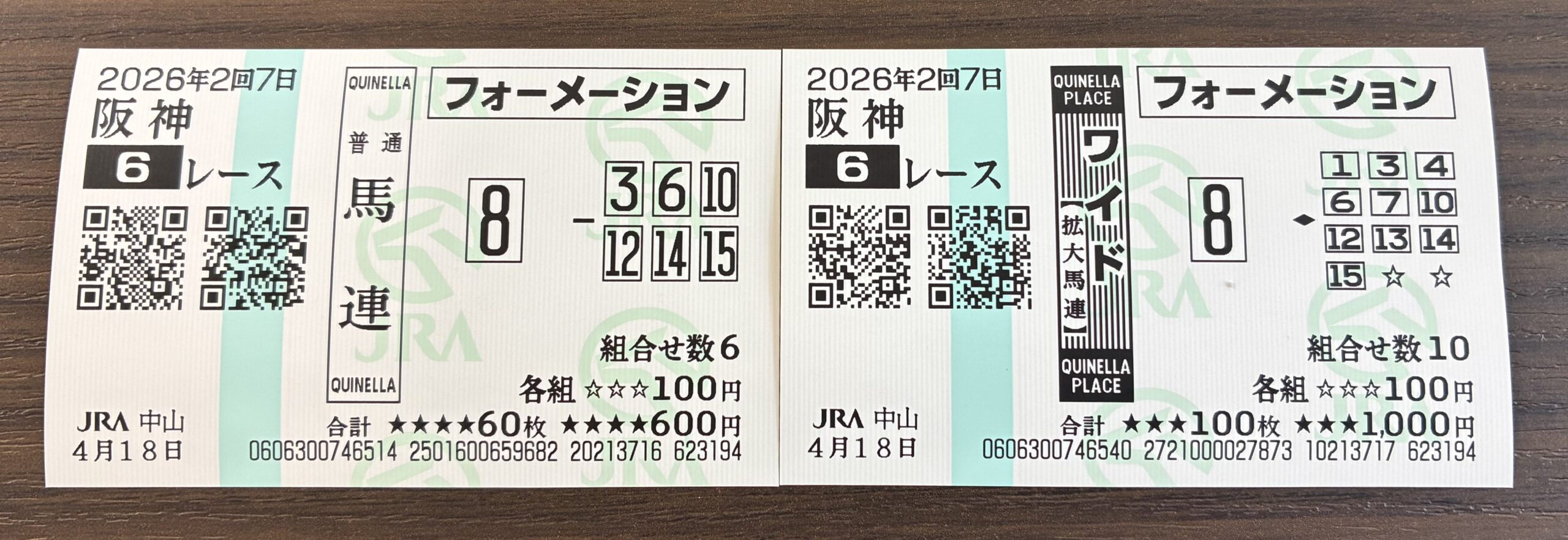 先週の牝馬クラシック第一弾 桜花賞、いかがでしたでしょうか。私は推しのナムラコスモス6着とイマイチな結果、3連複はダメでした。一方、お馴染みの手広くワイドの地引網は、ジッピーチューンが来てくれたお陰でワイド総取り、結果、気持ちだけプラスで終える事ができました🌸 指名馬のアランカールは、マイルなら、あんなもんかな。オークスで改めて期待したいです🤔